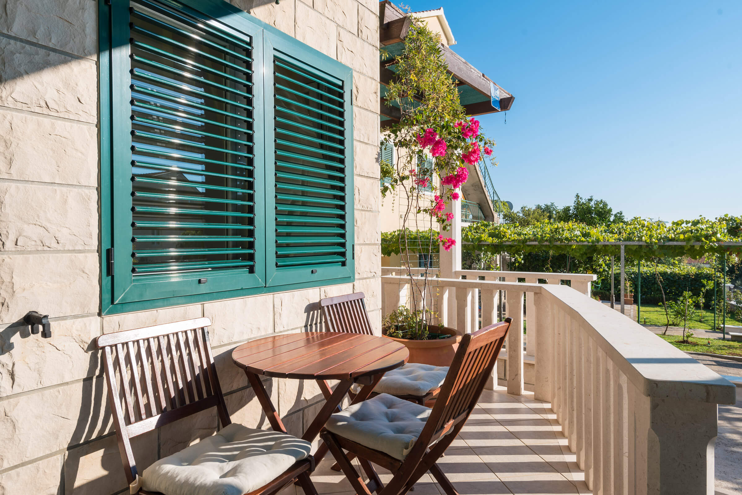 Twice a week clean towels are provided and every seven days the bed-clothes are changed (consulting the guest). To show our welcome there are some cold drinks in the fridge. The price is per apartment/day and it includes tourist tax, wireless internet (WiFi), an air-conditioning system, electricity, water, bed-clothes, towels and final cleaning. You can bring your pets with you, if informed in advance. The arrival day after 2pm, the departure day till 10am.