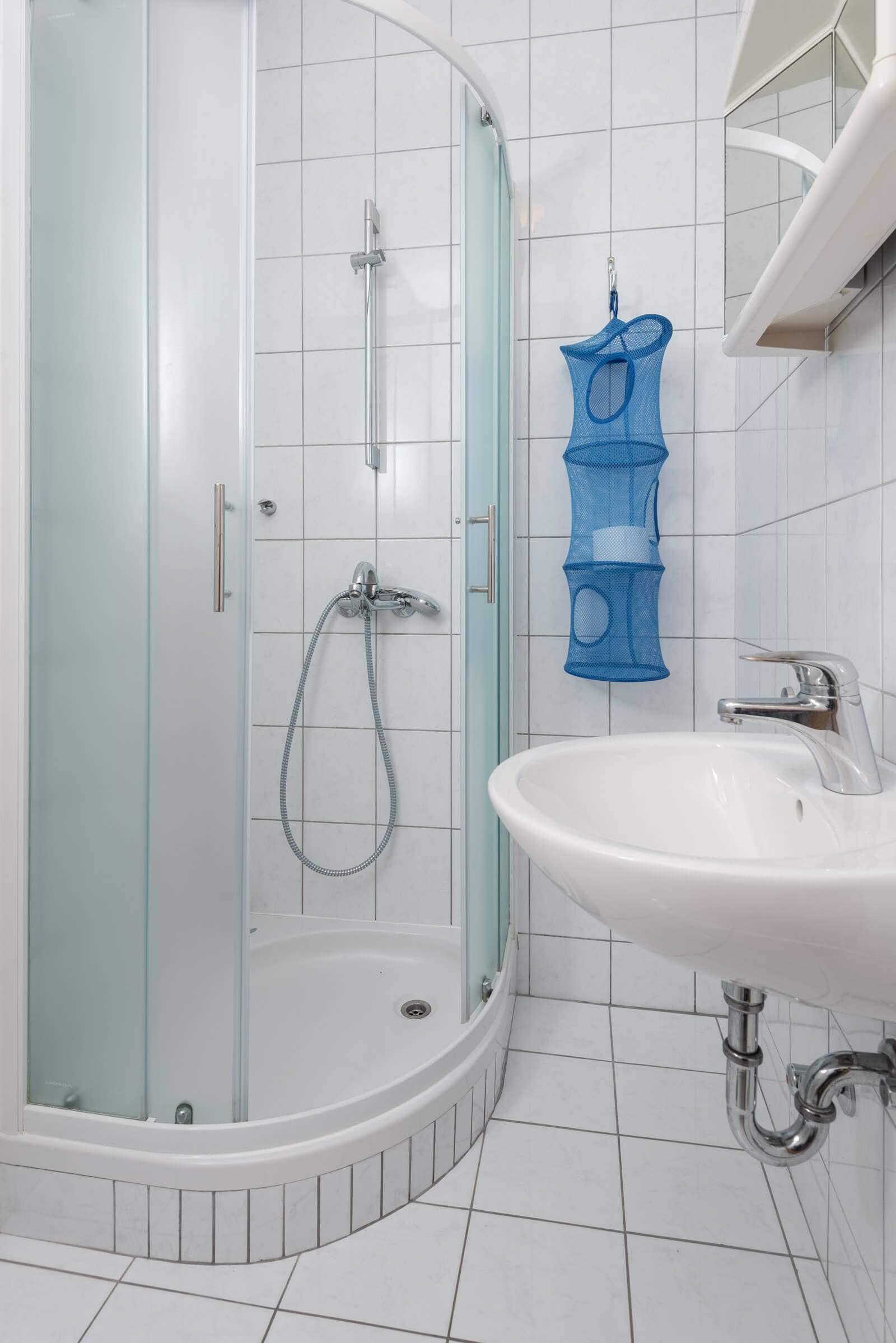consists of a bedroom with a double bed, a living room with an additional bed for one person, a TV (LCD) set (satellite transmission) and an air-conditioning system, a bathroom with a shower and a toilet, a completely supplied kitchen (+ dishwasher + microwave + a coffee machine) and a balcony with a beautiful sea view. The guests can use a parking lot in front of the house and the barbecue in the garden.