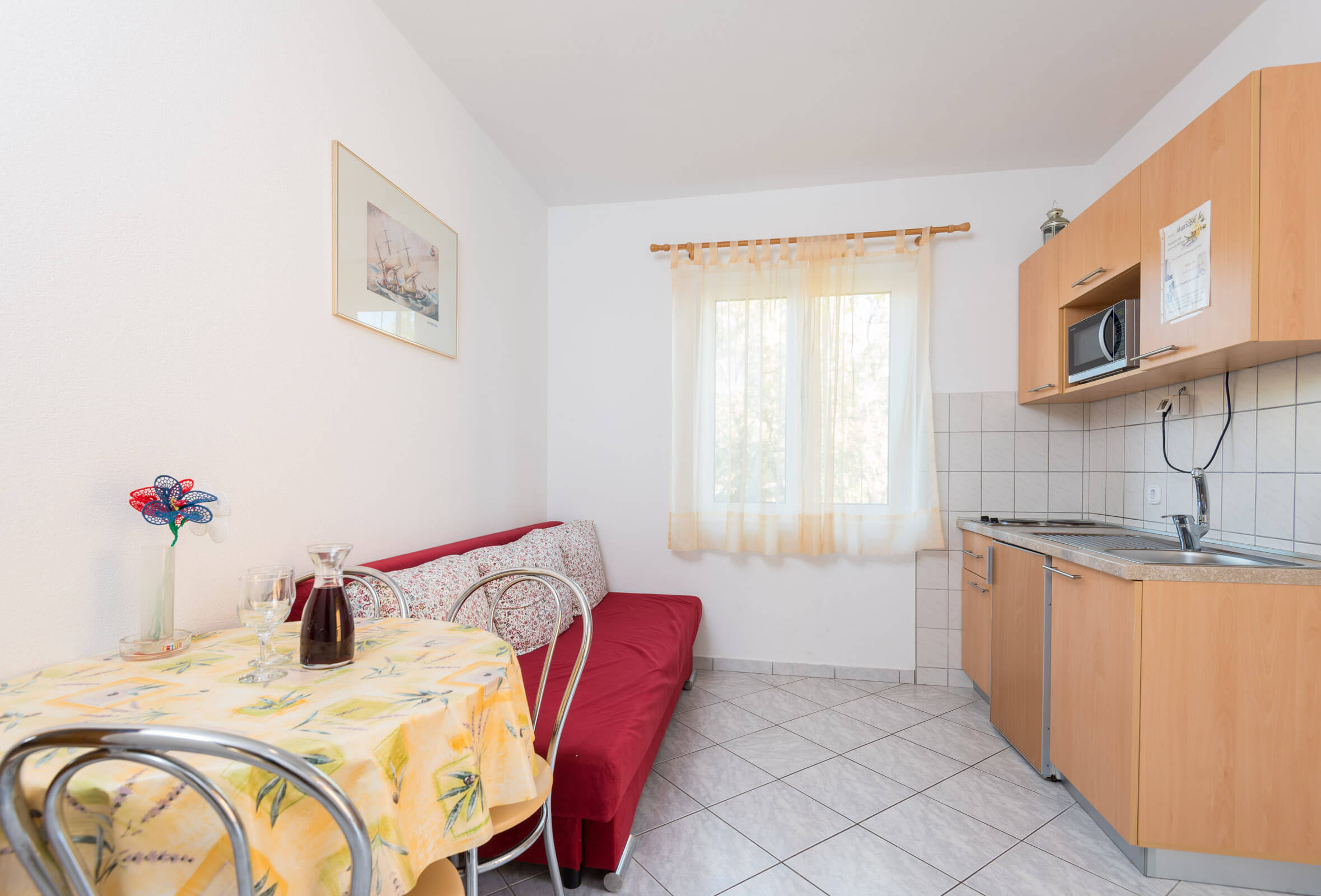 Twice a week clean towels are provided and every seven days the bed-clothes are changed (consulting the guest). To show our welcome there are some cold drinks in the fridge. The price is per apartment/day and it includes tourist tax, wireless internet (WiFi), an air-conditioning system, electricity, water, bed-clothes, towels and final cleaning. You can bring your pets with you, if informed in advance. The arrival day after 2pm, the departure day till 10am.